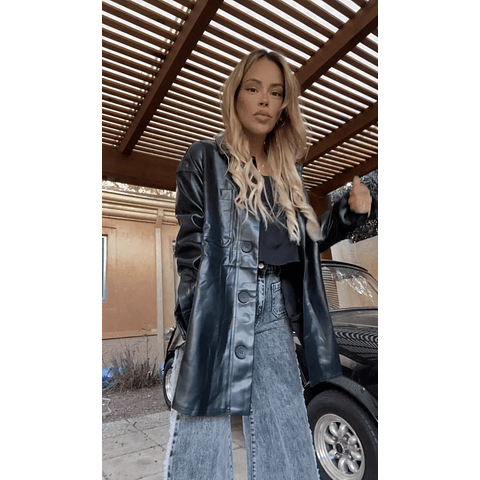 Camisa tipo chaqueta de cuero ecológico color negro, demasiado cómoda y calentita con un micropolar por adentro.