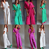 Escote en V con elastico en cintura, con opcion de lazo y pantalón tipo palazzo
