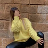 Sweater de lana grueso, cuello alto, con diseño en mangas.